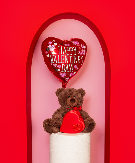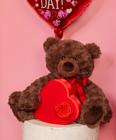 Send a warm embrace this Valentine’s Day with our Bear Hugs Bundle. This sweet gift features a cuddly plush bear, festive heart-shaped Valentine’s balloon, and a box of delicious chocolates—perfect for spreading love and smiles. Ideal for partners, kids, friends, or anyone who deserves a heartfelt surprise. A timeless Valentine’s gift that says “I love you” in the sweetest way.