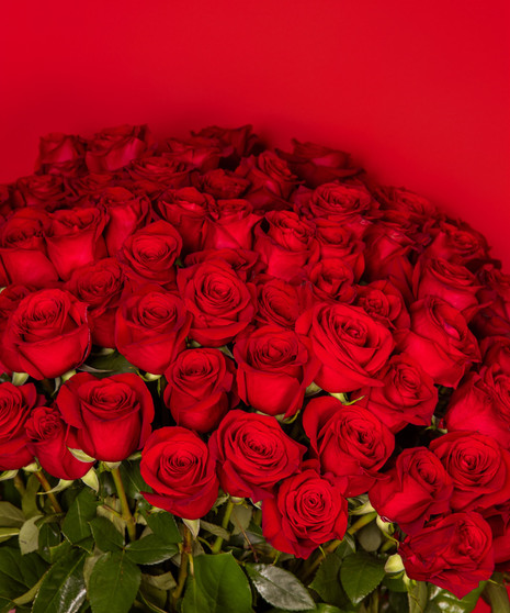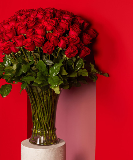 There is no other way to describe this over-the-top, dramatic bouquet of 100 luxury long stem, vibrant red roses. This is the ultimate when looking to make a statement like no other. A one of a kind for your one of kind.