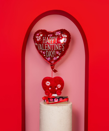 Turn up the charm this Valentine’s Day with our Kiss & Tell Bundle. Featuring a plush heart pillow with playful kiss details, a festive heart-shaped Valentine’s balloon, and a box of Sweet Shop USA truffles, this gift is equal parts fun and sweet. Perfect for flirty surprises, best friends, or anyone who loves a little extra personality in their Valentine. A bold way to say “Happy Valentine’s Day.”