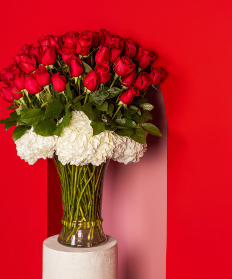 The Lavish — to bestow something in generous or extravagant quantities upon— that’s exactly how the receiver of this out-of-this-world presentation will feel! Overflowing with love, and 75 gorgeous long stem rose blooms exquisitely arranged with ivory hydrangeas in a tall glass vase creating the perfect circle, the symbol of eternity. Let them know you’ll love them forever.