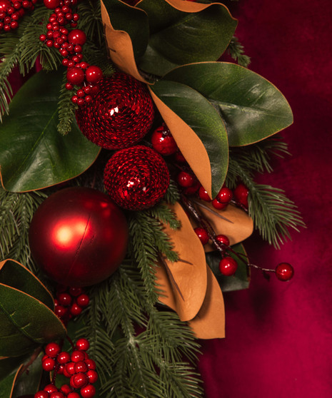 Rich and timeless, the Merry Magnolia Silk Garland brings a classic touch of holiday elegance to any space. Crafted with realistic magnolia leaves, vibrant red berries, and gleaming ornaments, this festive garland offers the beauty of the season with lasting appeal. Perfect for mantels, banisters, or doorways, it’s a sophisticated way to decorate year after year.