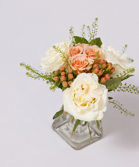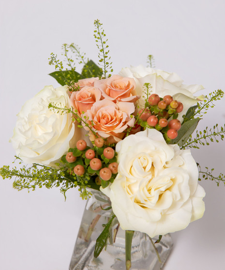 Peach Nectar is a soft and elegant arrangement designed to brighten any desk or workspace. Gentle peach roses blend with crisp white blooms and delicate accents for a fresh, polished look. Its compact size makes it perfect for Administrative Professionals Week appreciation. A thoughtful gesture that brings warmth, gratitude, and beauty to their day.