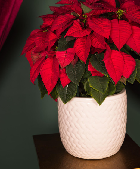 A timeless holiday favorite, the Classic Poinsettia in White Ceramic brings warmth and tradition to any setting. Featuring vibrant red poinsettia blooms nestled in a sleek white ceramic pot, this piece combines festive color with modern elegance. Perfect for home décor, office spaces, or as a thoughtful seasonal gift, it captures the joyful spirit of the holidays in a simple yet striking way.