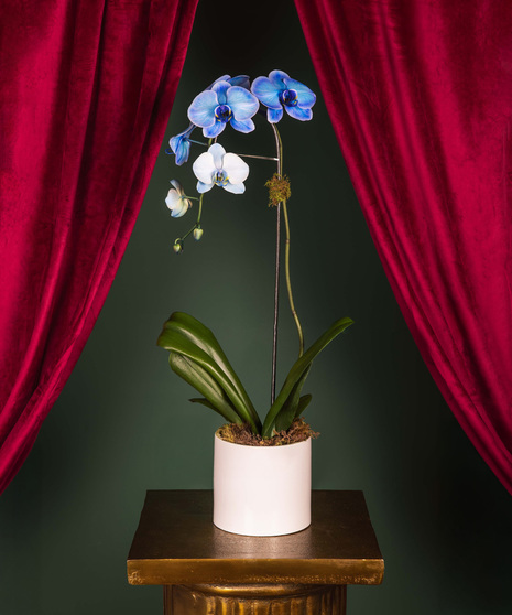 Graceful and luminous, the Sapphire Serenity Orchid shines with brilliant blue blooms that evoke peace and renewal. Presented in a modern container accented with natural moss, this stunning orchid makes an elegant statement for any season. Its serene tones also make it a beautiful choice for Hanukkah décor or gifting — symbolizing light, hope, and harmony.