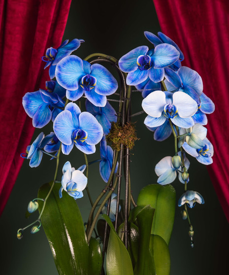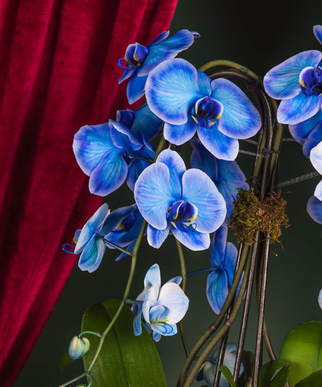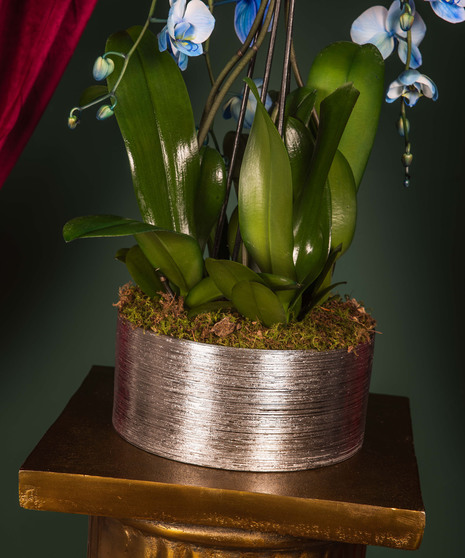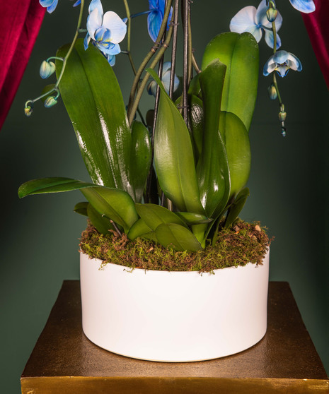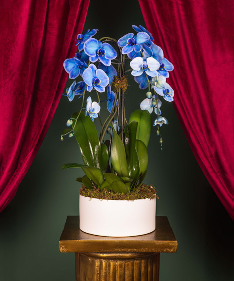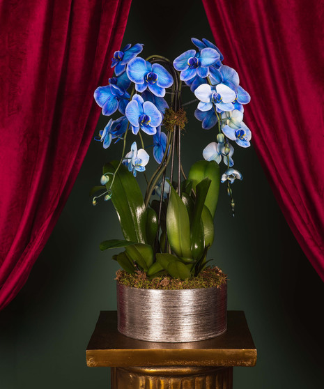 The Sapphire Serenity Orchid Luxe is a breathtaking display of elegance and calm. Featuring two cascading stems of radiant blue orchids presented in a wide modern container with natural moss, this living work of art adds a refined touch to any space. Its serene blue hues and graceful design make it a stunning choice for both winter celebrations and Hanukkah décor — symbolizing peace, light, and renewal.