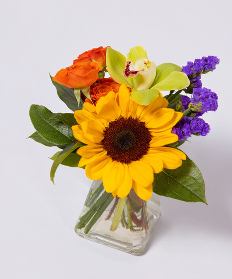Citrus Bliss is a bright and cheerful arrangement designed to energize any workspace. A vibrant sunflower is paired with fresh blooms and lively accents for a crisp, uplifting look. Its compact design makes it perfect for desks and small spaces during Administrative Professionals Week. A refreshing way to show appreciation and bring a burst of positivity to their day.