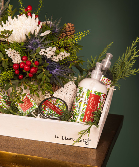 The Winter Garden Gift Set captures the calm and beauty of the season in a sophisticated blend of fragrance and design. This elegant collection includes winter-inspired bath and body essentials with fresh botanical notes, complemented by natural accents of pinecones, berries, and evergreens. Presented in a clean white tray, it evokes the serenity of a snow-dusted garden — a perfect gift for relaxation, reflection, and holiday indulgence.