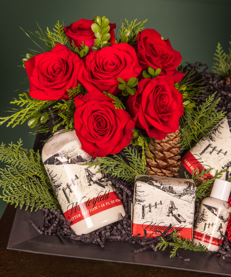 The Winterfield Gift Set is a luxurious winter collection designed to delight the senses. This curated ensemble features rich, cozy elements including premium bath and body essentials, soothing lotion and soap, and a touch of seasonal charm with festive greenery and pine accents. Presented in a sleek modern tray, it captures the warmth and sophistication of the holidays — perfect for gifting or enjoying a well-deserved moment of self-care.