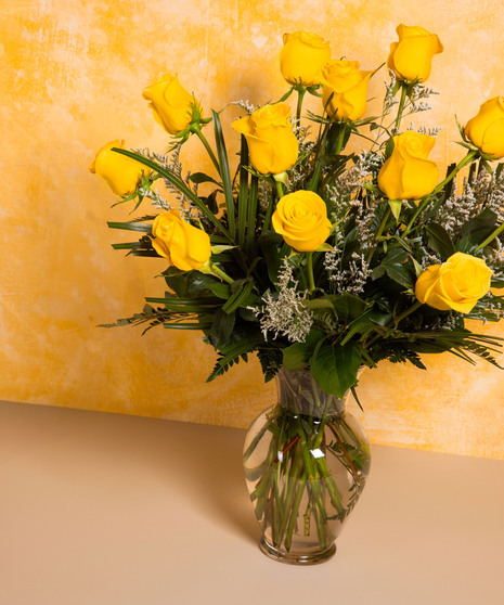 Yellow Ultimate is a bright and cheerful way to celebrate Mom this Mother’s Day. One dozen premium yellow roses are beautifully arranged with lush greenery and delicate accent blooms for a fresh, radiant presentation. Designed in a classic glass vase, this arrangement brings warmth and happiness to any space. A joyful expression of love, appreciation, and sunshine for Mom.
